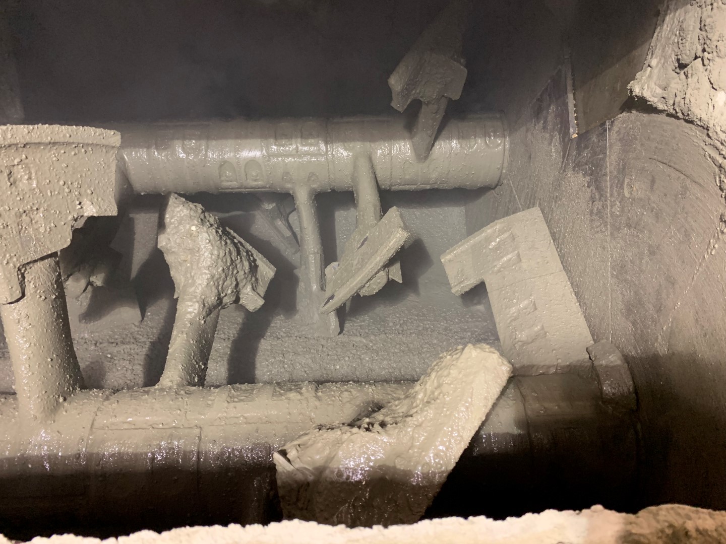 Malaxeur double arbre après un cycle de nettoyage avec une tête de nettoyage